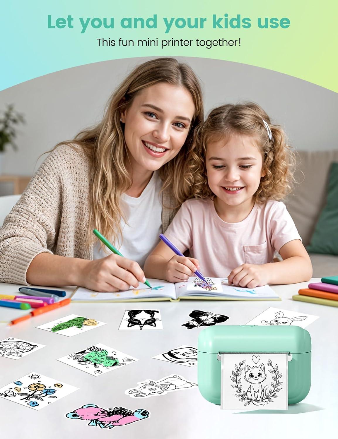High-quality Printing: Our mini printer sticker maker has an adorable and compact design, perfect for kids. Unlike other mini printers, it offers clear prints and high definition images-with a printing speed of 15mm/s and a resolution of 203dpi, safeguarding children's eyes during learning and play. With one – click printing, it's a time and energy saver. When printing photos, select “Picture”(Note: Charging adapter not included, not for fast – charging adapters)